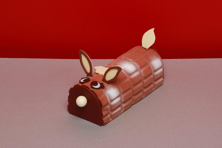 いつものビュッシュをやめてみる?クリスマスの脇役、トナカイが主役になってもいいよね?と言った発想から生まれたビュッシュだそうで、ビュッシュ・ドゥ・ノエルの「ビュッシュ」と、フランス語で鹿という意味の「ビッシュ」をかけた発音が似た2単語の言葉遊びを隠しています。