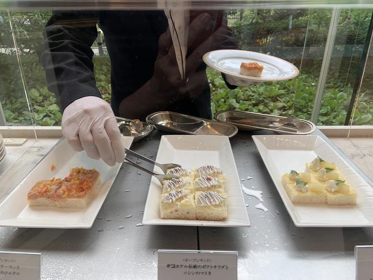 ドリンク以外は、ホテルスタッフさんが、希望の料理をお皿にのせてくれます。自分でのせるより美しくセットしていただけるので、感染症対策とは言え、嬉しいです。