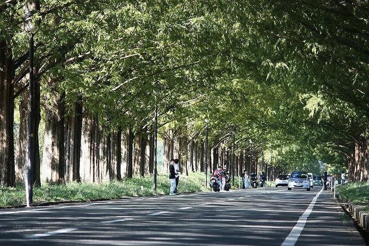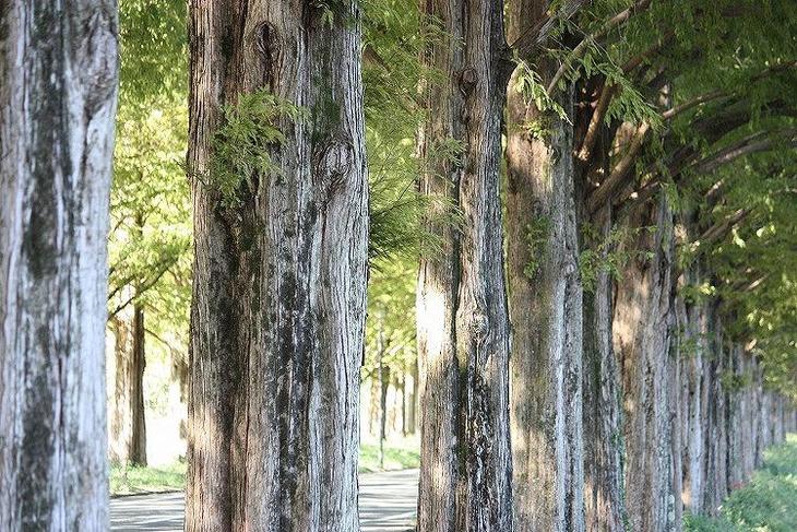 緑美しいメタセコイアの並木道。