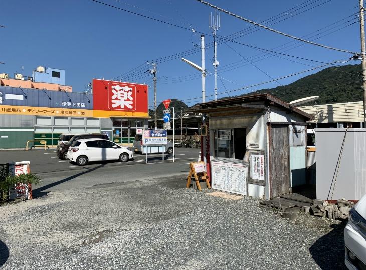 下田駅改札口を出てすぐの有料駐車場、目印は薬の看板「セイジョー」です。