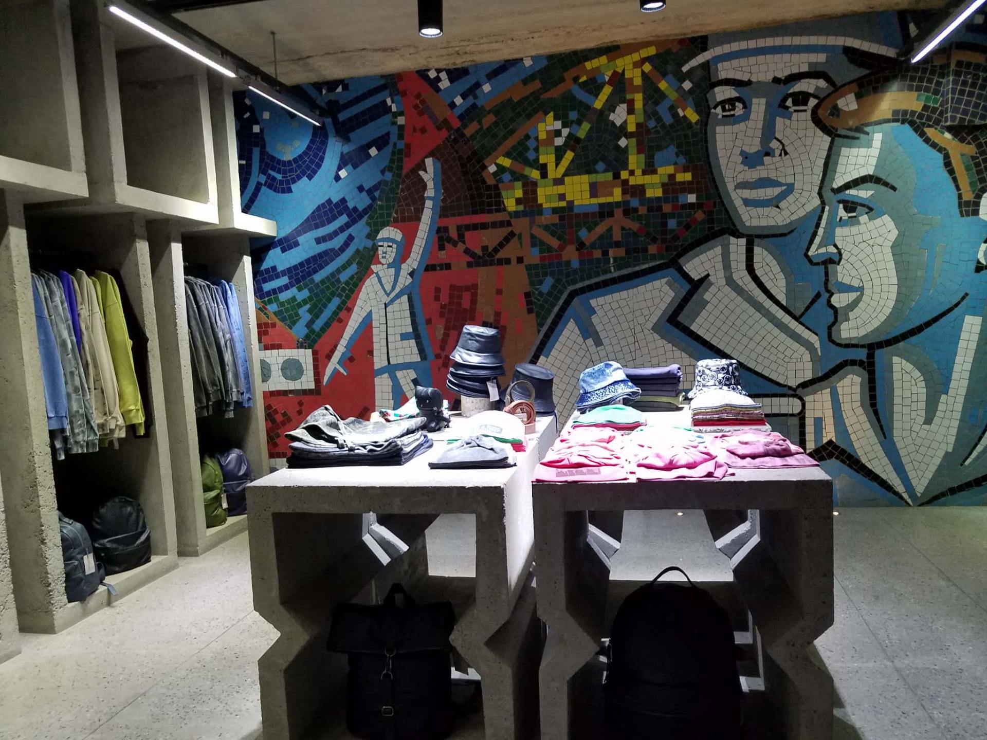 こちらの店内はそれほど広くないが、店の奥のソ連建築風モザイクタイル壁画に度肝を抜かれるはず!