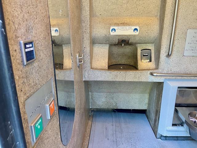 サンフランシスコは、飲食店のおトイレは、利用者以外は断られることがほとんどで、デパートやモール内のトイレ自体が分かりにくいです。このセルフクリーントイレは、歩道や広場にあり、無骨ながらも目立ちます。人の手による点検もまめにしていますし、なんと言っても使う度洗浄しているので間違いなく清潔です!もし街中でトイレに困ったら挑戦してみてくださいね。