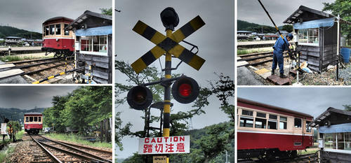 駅のそばには踏切と小屋もあります。手動式の遮断機も珍しいですね。