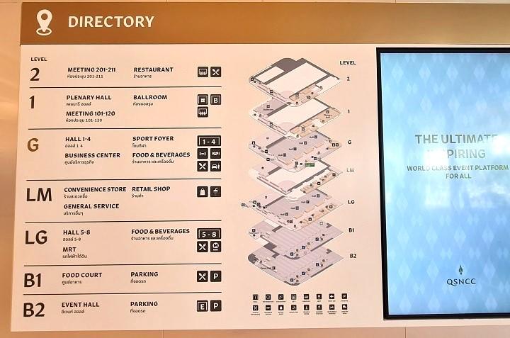 クイーンシリキットナショナルコンベンションセンター(Queen Sirikit National Convention Center、略記:QSNCC)は、約150億バーツかけられ、2022年、タイで最も大きい会議場としてリニューアルオープンした施設です。バンコクの中心地で、その規模は以前の5倍となり、45,000 sqmを超える大展示ホール2つ、約10,000sqmの会議場2つ、50のミーティング・ルーム、小売りゾーンを含む78,500sqmのスペースを所有しています。