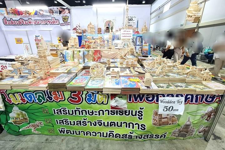 組み立てると恐竜や車などになるもの(50バーツ~)や積み木などのおもちゃ、タイ文字や英文字を覚えやすいようなノートやポスター形状のもの(1枚約20バーツ)、地図や100g10バーツで量り売りのノート(私が購入したノートは2冊で35バーツ位)などが私には印象的でした。
