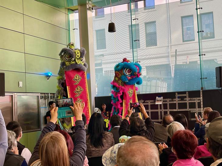 見学者にはお土産入りミュニのエコバックも配られ、見学会の前には、SFMTA担当者、ディレクター、市議、チャイナタウン商工会議所関係者、チャイナタウン開発センター、デザイナーetcのあいさつがありました。英語のみのスピーチには全て通訳がつきました。また中国語でスピーチされた方は(多分)同じことを英語でもされていたのが印象的でした。