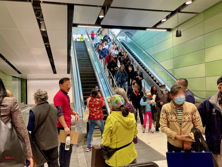 遂に公開!ミュニメトロTサードライン(セントラル線)の駅の一つ『チャイナタウン-ローズ・パク駅』の内部を見ることができました。昨日チャイナタウンの人達への見学会が行われ、噂どおりサンフランシスコで最も美しい駅でした。セレモニーも執り行われ、ミュニのディレクターがにこやかに「この駅はあなた達の駅です!」の言葉に拍手が起こり、それを通訳している方も感極まって言葉に詰まる心温まるものでした。