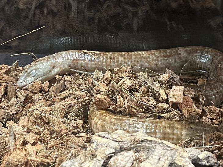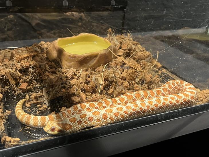 ヘビには閉じる瞼がないのでこんな風に目を閉じることができないんです。