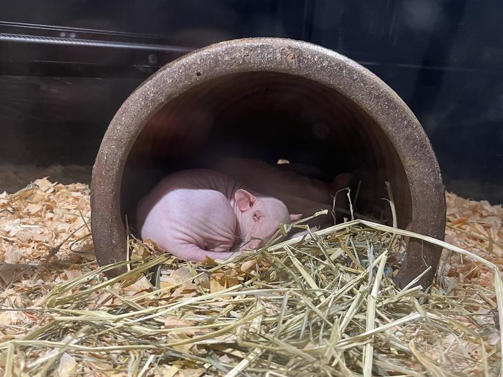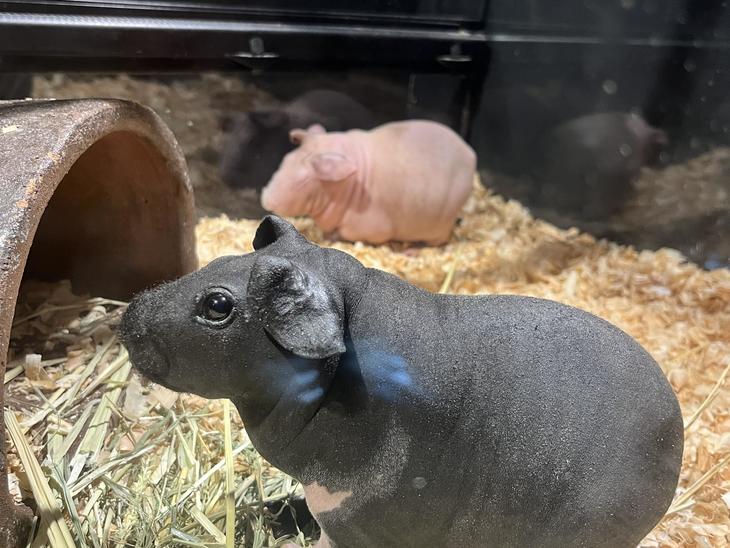 この豚の貯金箱みたいな愛らしい子は、なんと毛のないモルモット。