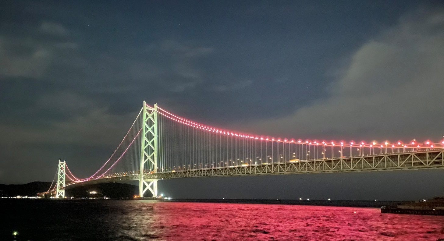 夜になると明石海峡大橋が美しくライトアップされます。水面に光が反射し日中とは違ったロマンチックな雰囲気となります。ライトアップスケジュールはこちらから