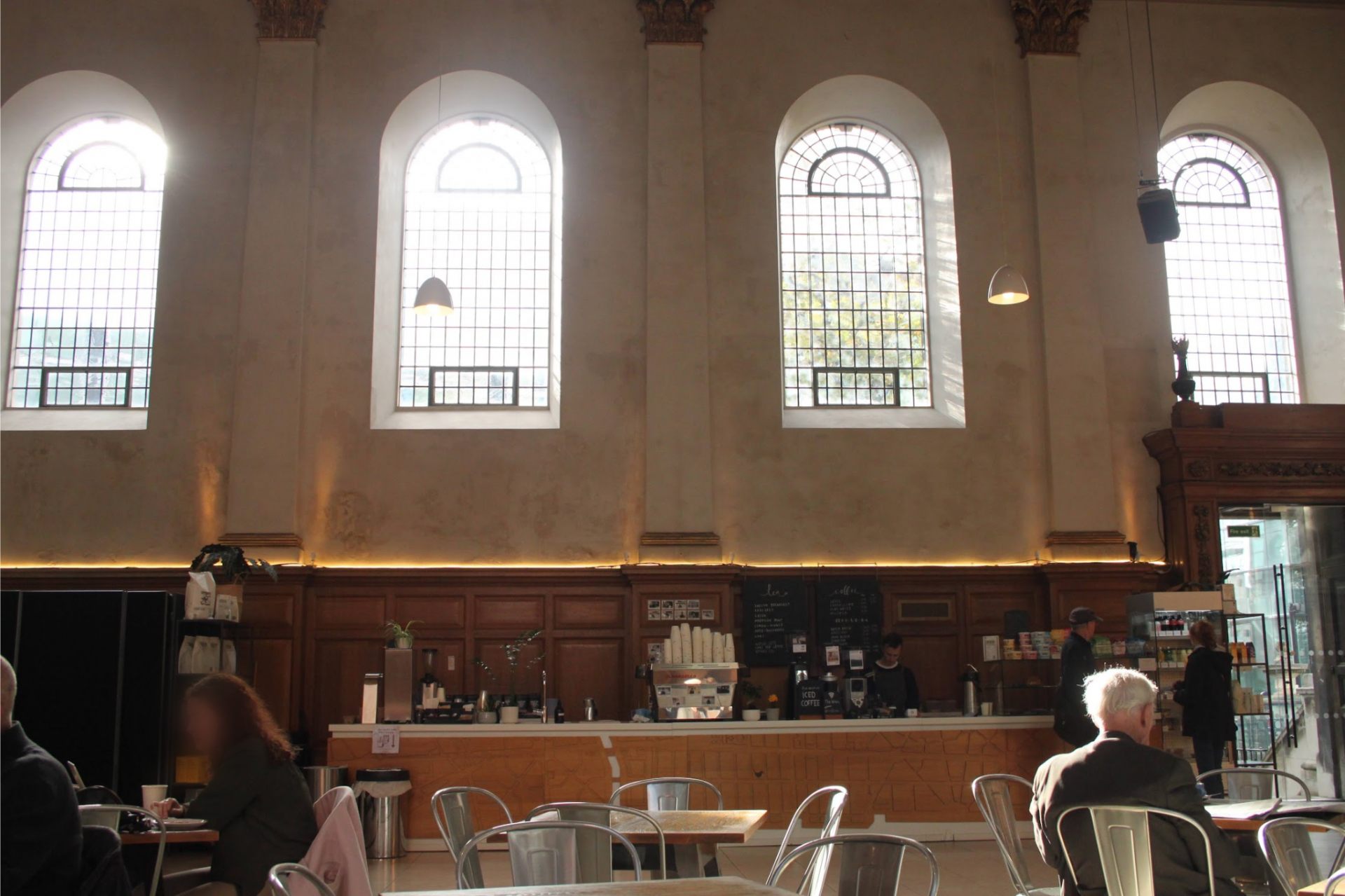 美しいステンドグラスとシャンデリアが備わっていながら、誰もを受け入れてくれるような居心地の良い空間です。
