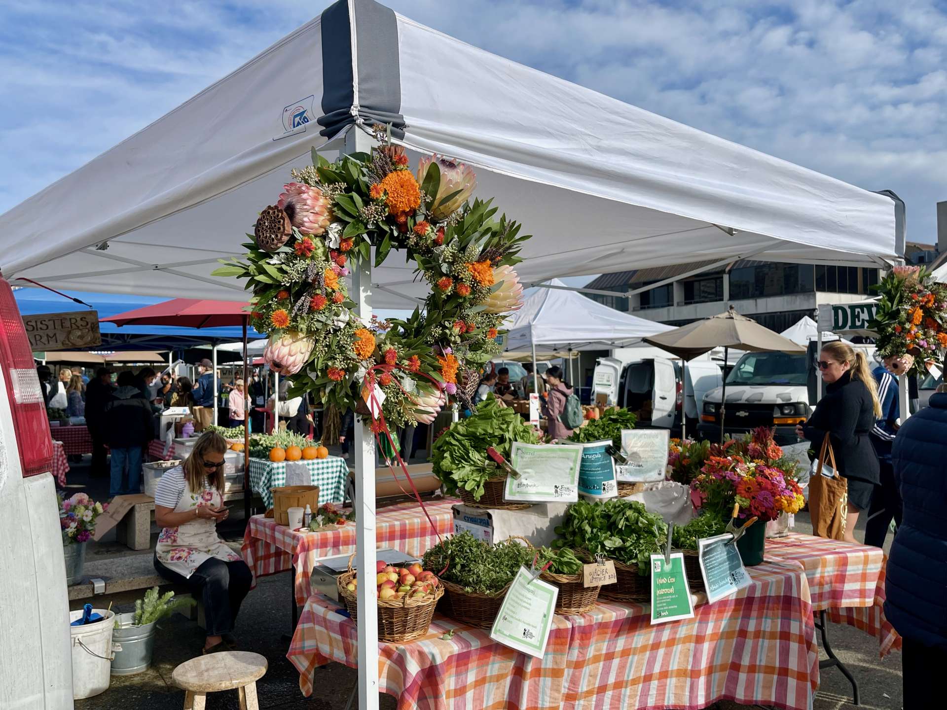 リース=ホリデーシーズンと思いませんか?外径が50cmくらいのベイリーフやローズマリーで作られた秋バージョンのリースはお値段60ドル!迷わずあきらめました。