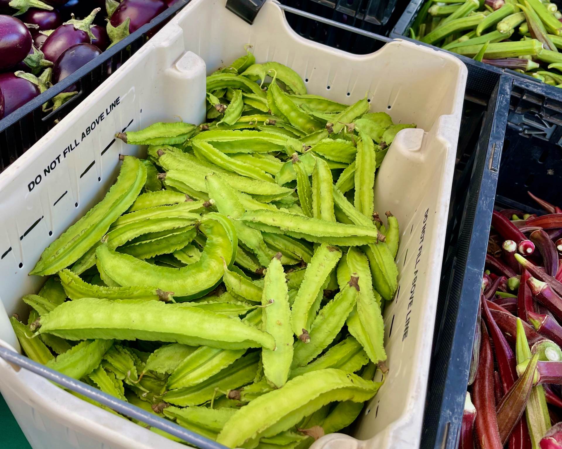 「Wing Beans」日本語「四角豆(しかくまめ)」「うりずん豆」と言います。その名の通り、四角い形で角が羽みたいになったお豆さん。南アジア原産です。角がなるべく黒ずんでいない物を選んでください。温かい国の食べ物なので冷蔵庫に入れっぱなしだと冷風で痛んじゃいますから、早めに食べてください。