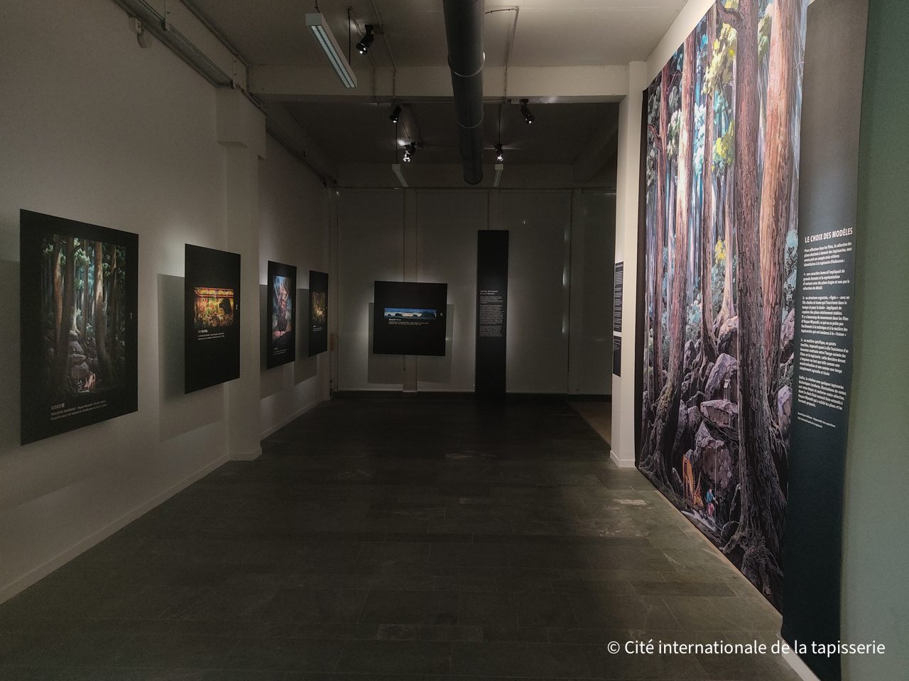 「オービュッソン、宮崎駿の空想世界を織る」のタピスリー制作は、進行に合わせて国際タピスリーセンターの見学コース内に設けられた専用スペースに展示されています。2021年5月には新しい可変展示スペースも作られました。専用スペースでは薄暗がりの中、黒枠に縁取られたアート紙に描かれた将来のタピスリーのさまざまな下絵も、照明に照らされ展示されています。