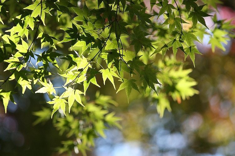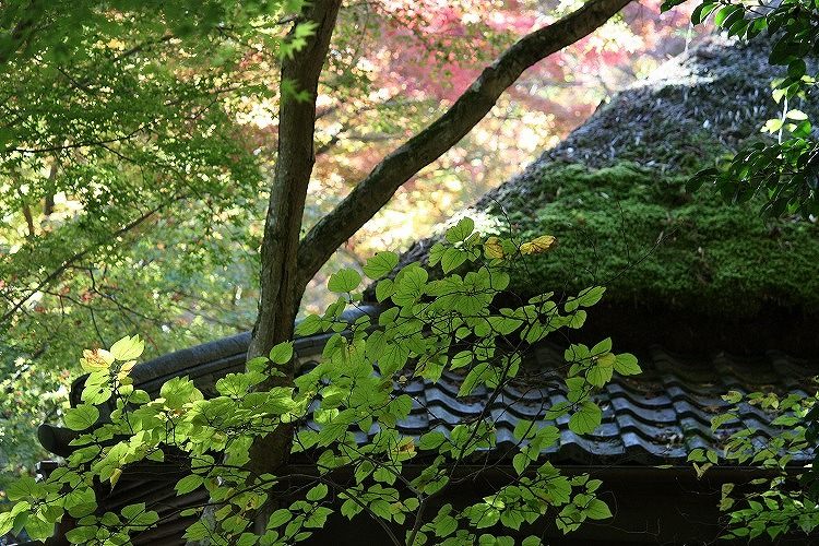 陽の当っていない所のモミジは、まだまだ青モミジです。