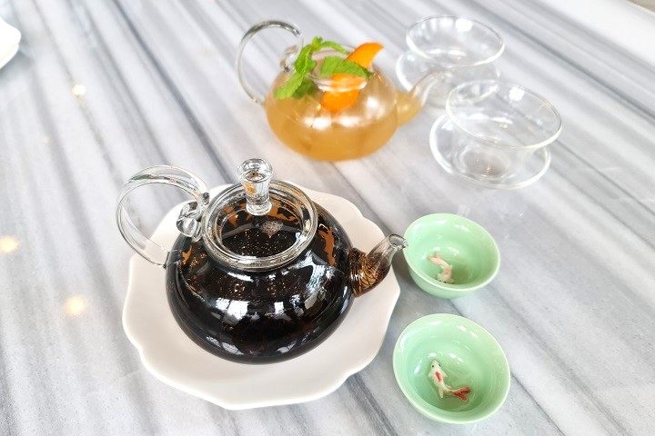 アールグレイのほうのカップには金魚の装飾が施されており、とてもかわいかったです。なおかつ、お湯の継ぎ足しがサービスでいただけて、とてもお得感がありました。