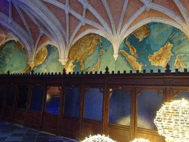 ぐるっと張り巡らされた壁に描かれた世界地図はロマンを感じます。