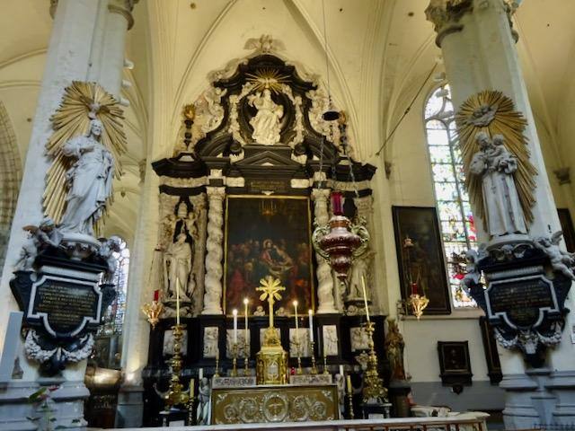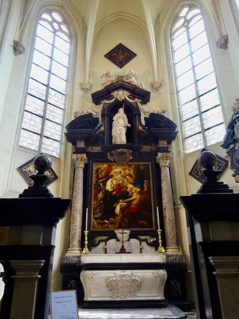 ルーベンスは礼拝堂で聖人に囲まれた祭壇画マドンナを描きました。教会のほかの場所では、ヨルダーンスの傑作を鑑賞することができます。