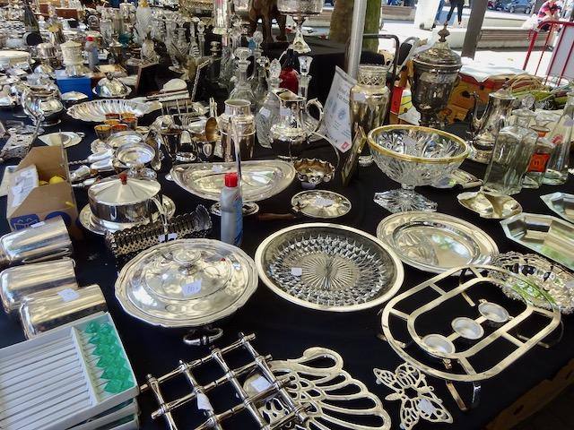 このマーケットには、アンティークのおもちゃから人形、本、雑貨など、いろいろなものが揃います。大きいものでは家具も。個人的には食器に興味があります。シルバーのコレクションはいつも豊富で、銀食器を狙っている人にはおすすめです。