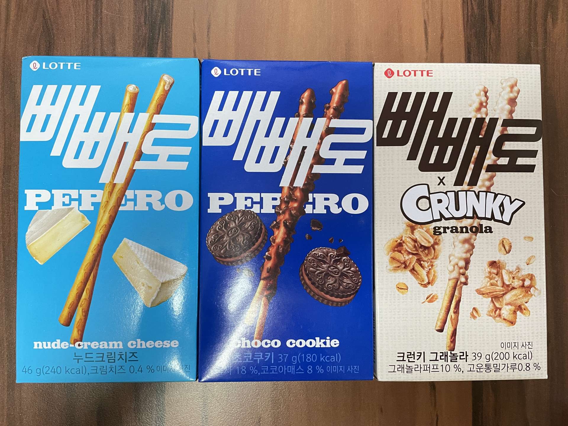 大型スーパーのHomeplusでは大きめの箱に小さいペペロが入っているバラエティーパックが多かったです。家族や友達と分け合うのにちょうどいい量ですね。