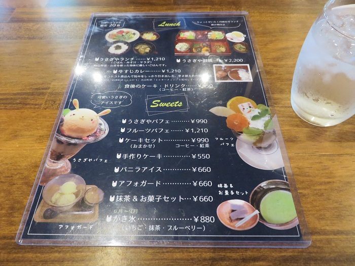 メニューを見ると地元の旬の食材を使ったカラダにやさしいランチをはじめ、可愛いうさぎアイスにキュンとしちゃうデザートとドリンクがあります。ディナー(18:00~22:00)は要予約となっていますのでご注意ください。