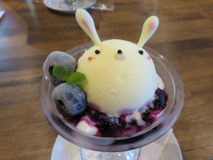 「福」を呼ぶ縁起のよい動物「うさぎ」をモチーフとした可愛いうさぎやパフェは、自家農園のブルーベリーを使ったブルーベリーソースがトッピングされていてヨーグルトとの味わいがおいしくてカラダのなかからス~とスッキリ♪休日のランチタイムは、賑やかな雰囲気だったけど落ち着いた時間帯ならゆっくりと大山(だいせん)を眺めながらゆっくりと「とき」を過ごせそうだなぁと思いました。