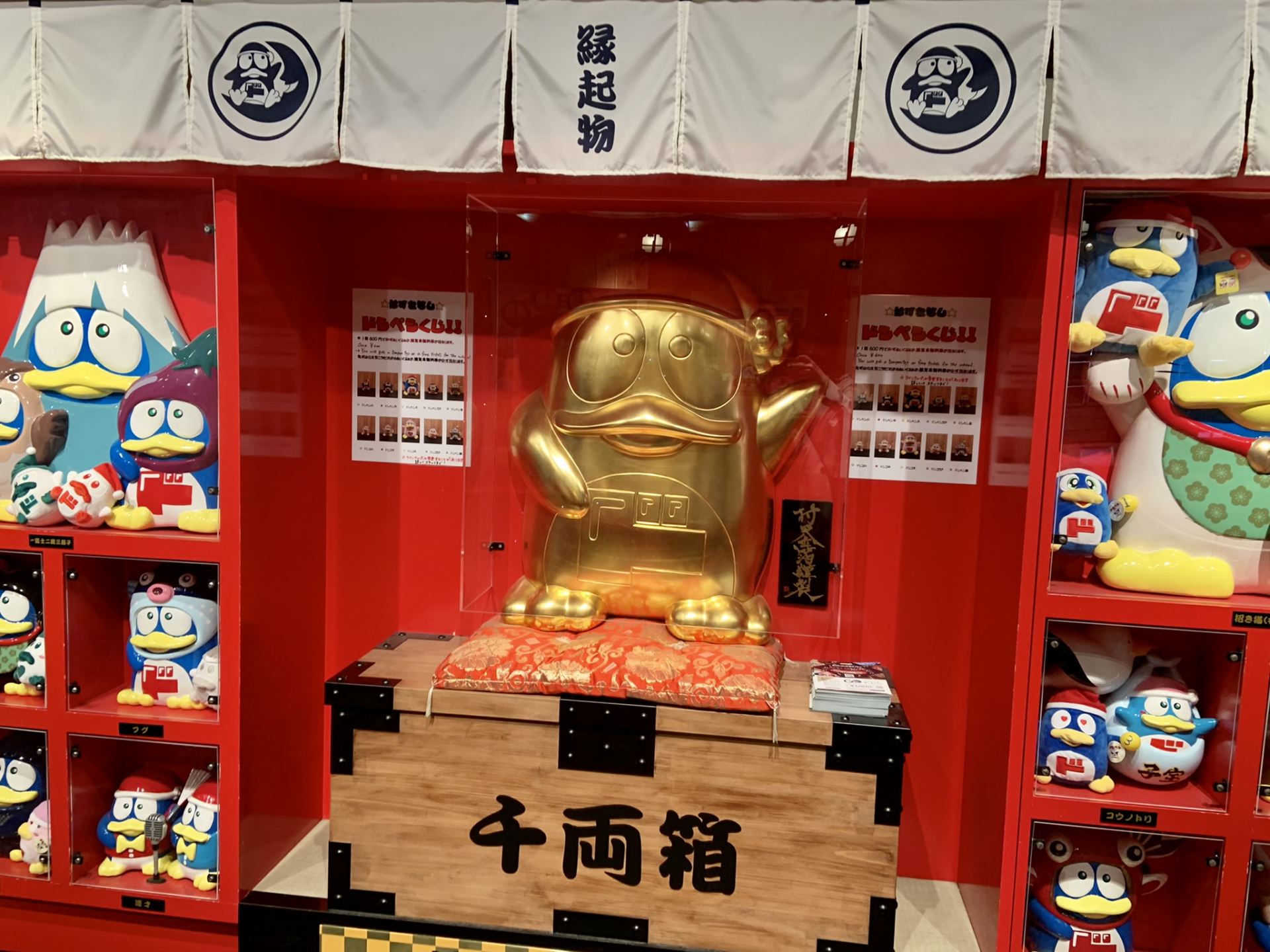 ゴンドラを降りると目の前には、金箔のドンペンくんや縫いぐるみが、出迎えてくれます。