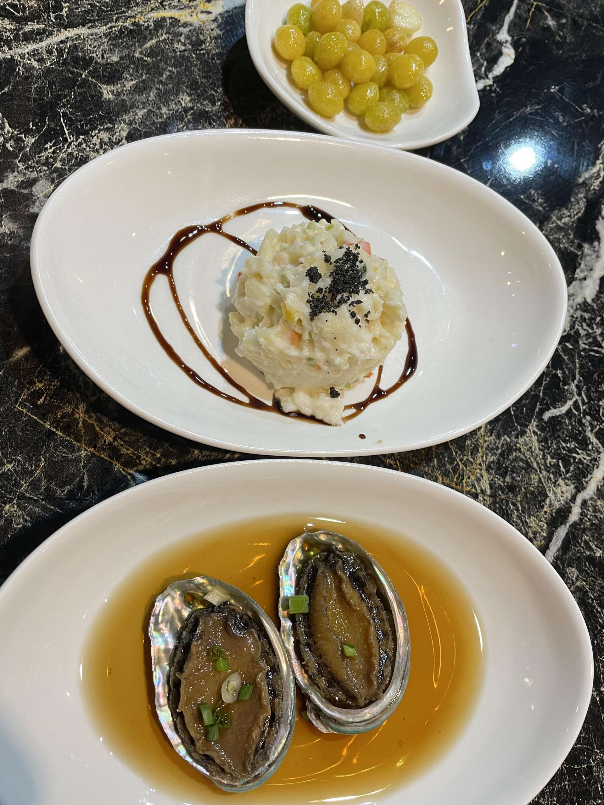 銀杏、ポテトサラダ、アワビの醤油漬けなどが出てきました。