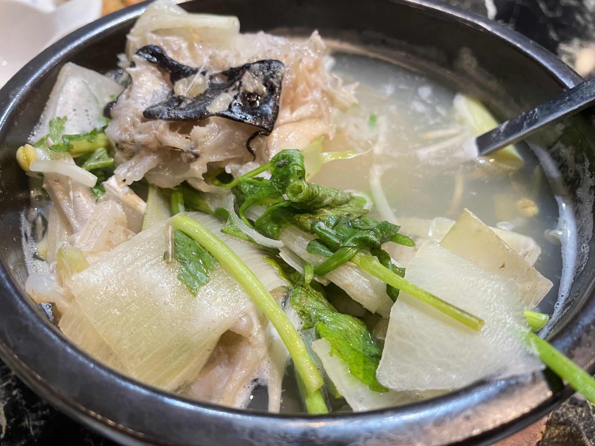 最後にはアンコウ鍋が出てきました。辛くなくアンコウがしっかり入っていて、野菜もたくさん取れて、温まります。
