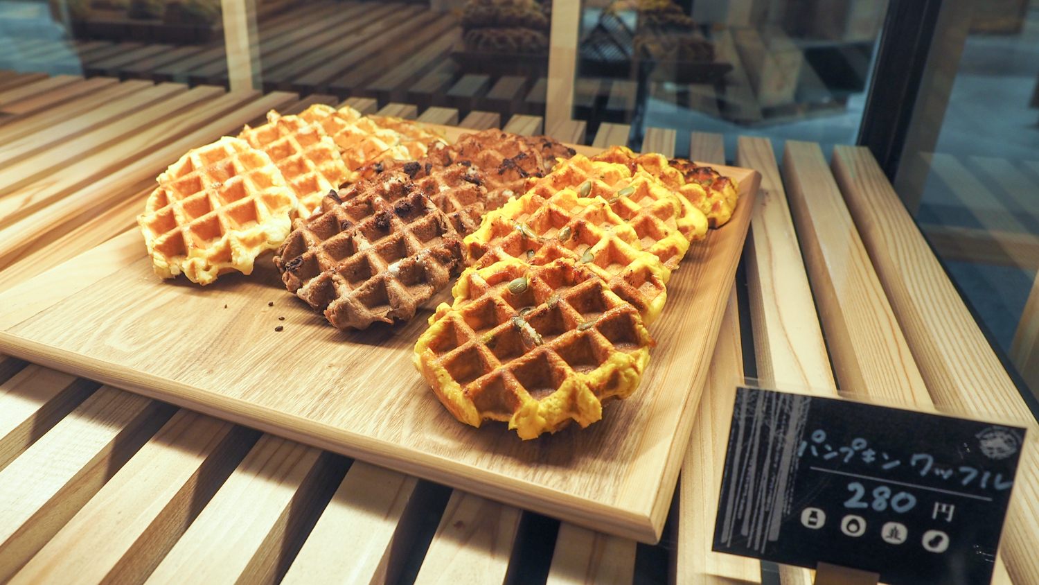 カンパーニュやクロワッサン、フォカッチャやライ麦パン、マフィンやワッフルと、食事系からスイーツ系までバラエティ豊かなパンが並びます。