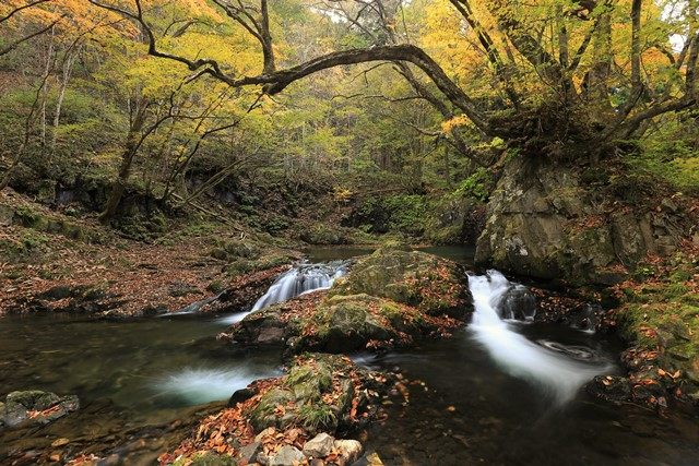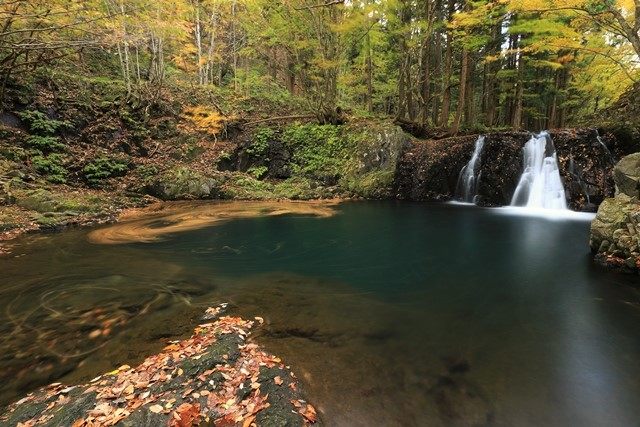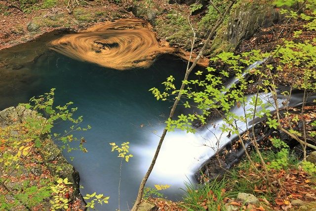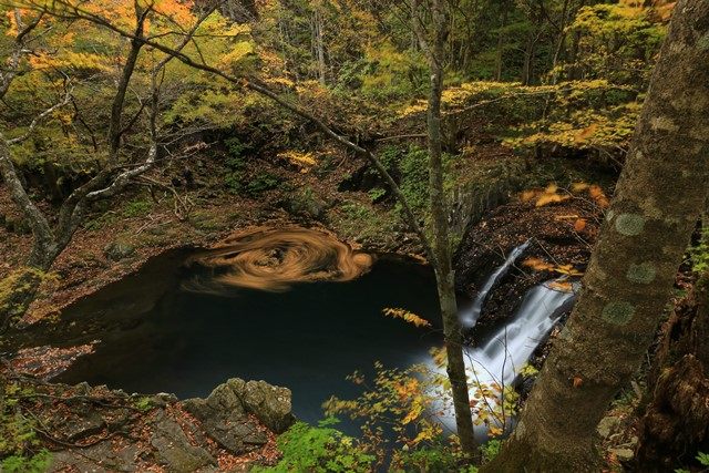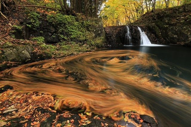 落ち葉グルグル♪紅葉の竜神滝@南会津町