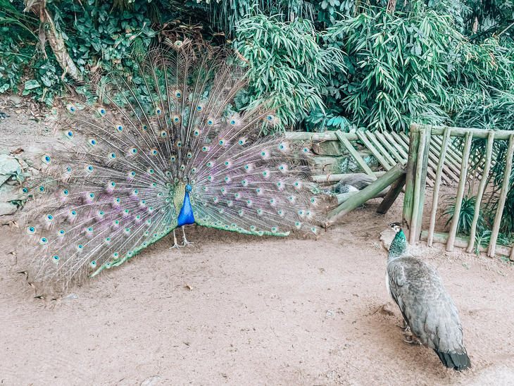 孔雀が敷地内の道を普通に歩いていてびっくり!