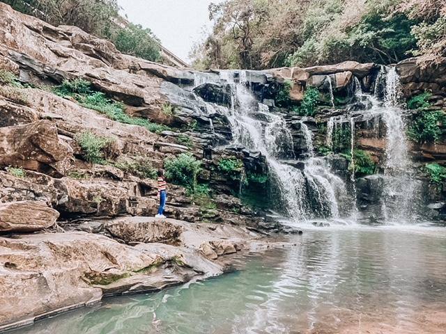 トレッキングコースの最後には、ダイナミックな滝が!