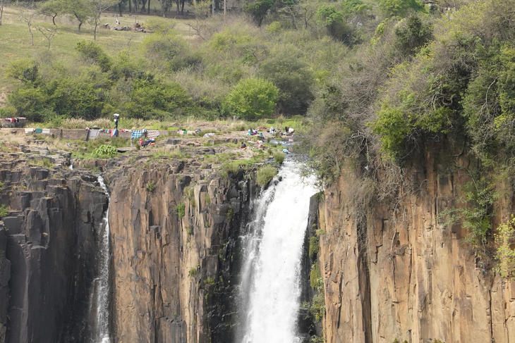滝の上にはプレハブのような建物があり、なんと洗濯をしているような人影も見られ驚きの光景でした。