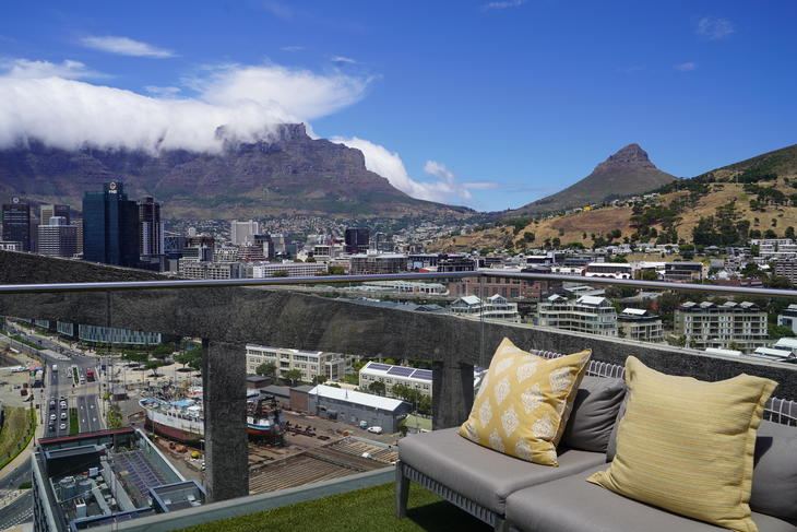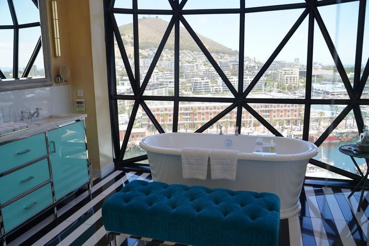 近代的なデザインの窓からテーブルマウンテンやウォーターフロントの町並みを一望できます。