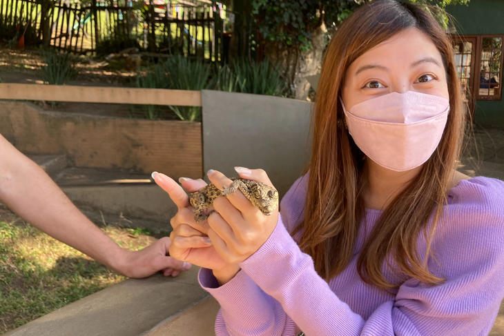 何と子供のクロコダイルを触る体験もできます。