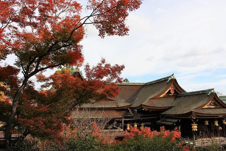 晩秋の空に北野天満宮の建物が映えています。