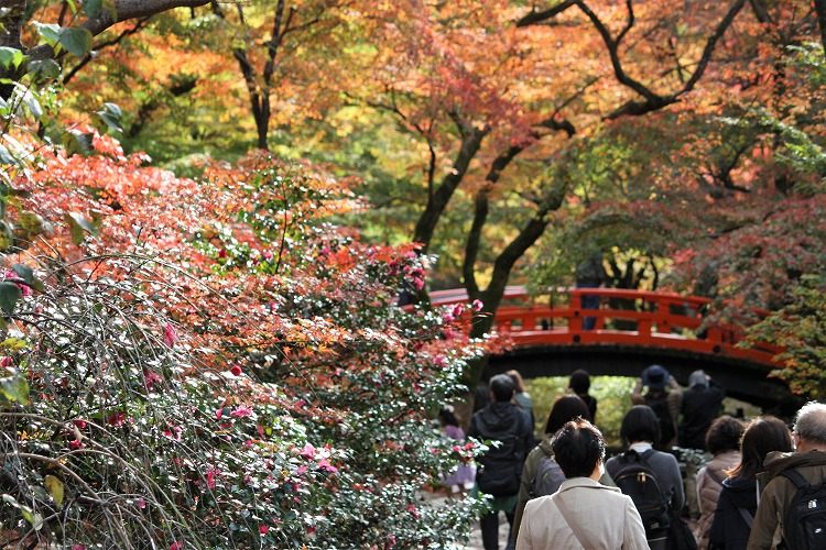 紙屋川を見渡す、朱塗りの欄干からは素晴らしい紅葉景色が