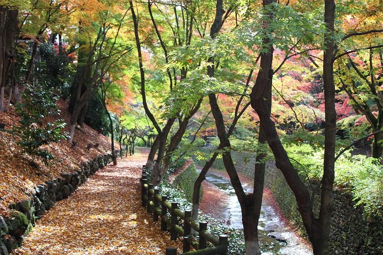 紙屋川沿いに広がる紅葉景色に圧倒されます。