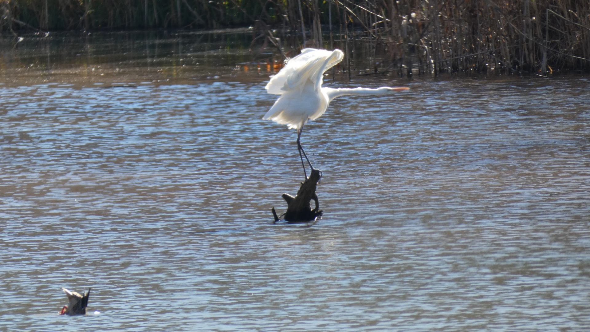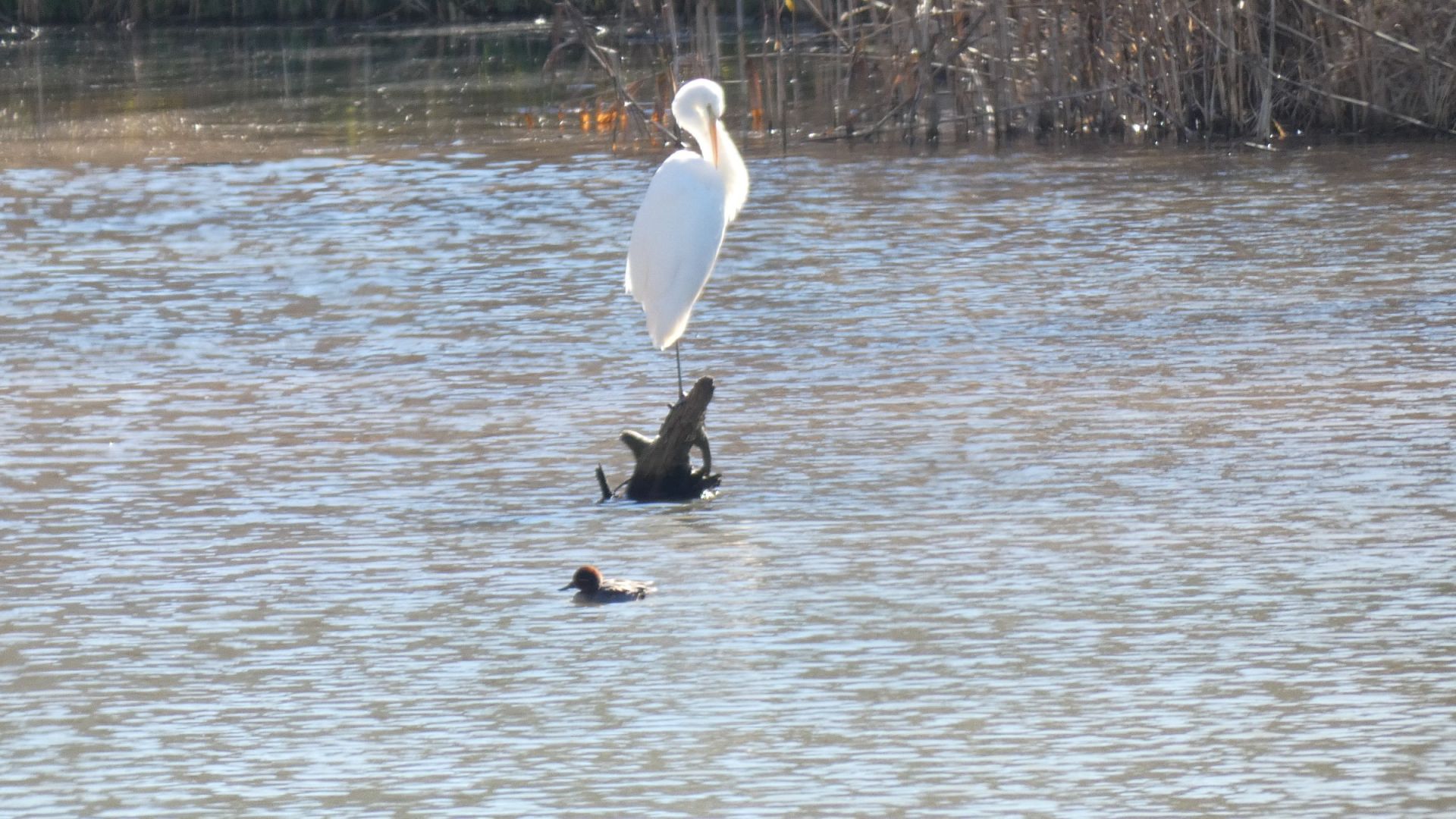 近くの池では、シロサギや鴨が気持ちよさそうにしていました。