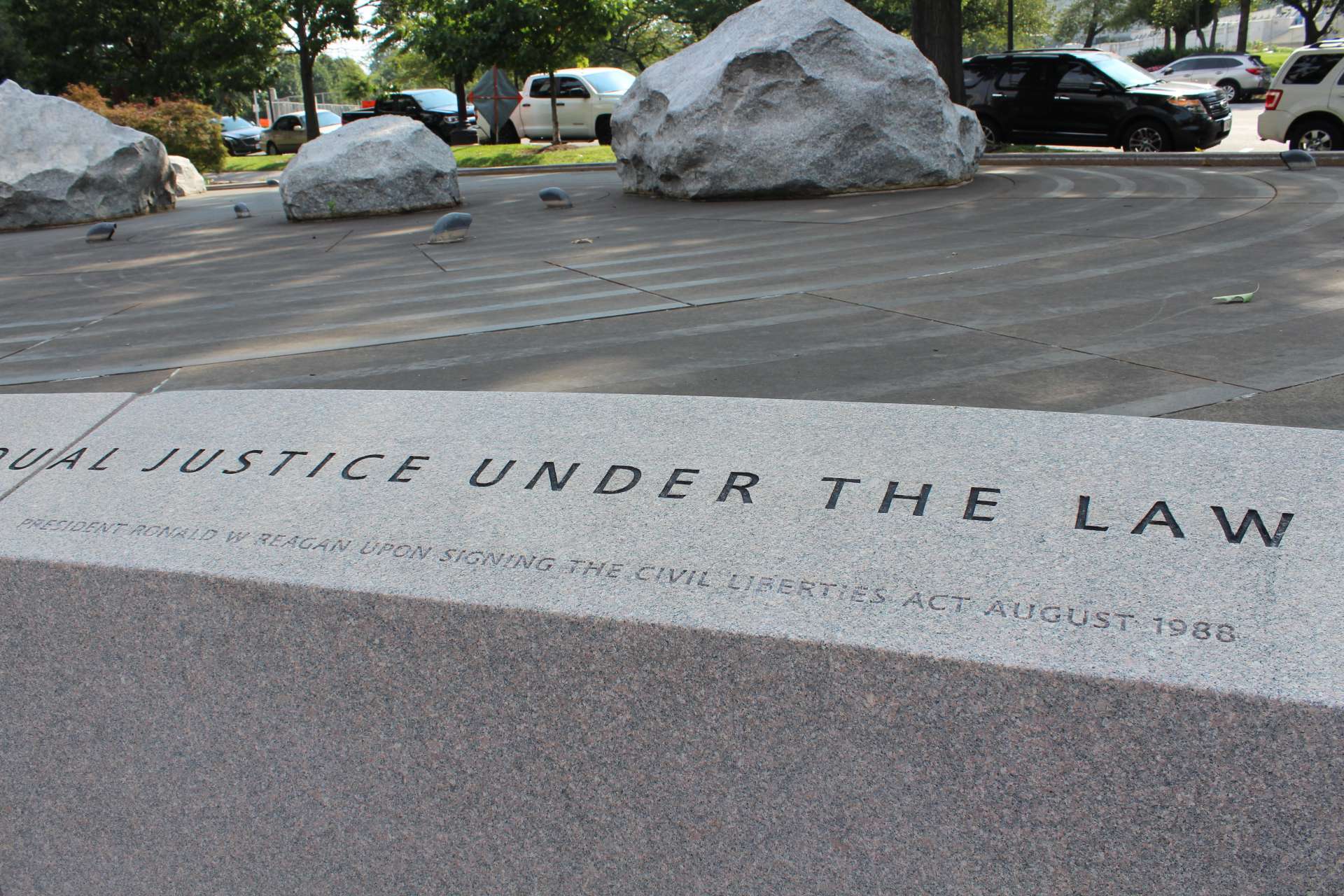 1988年にレーガン大統領(当時)が署名した市民自由法案Civil Liberties Actで、公式に連邦政府が収容された日系人に対し謝罪しました。「過去の過ちを認める」と、署名時の大統領の声明が人工池の淵に刻まれています。