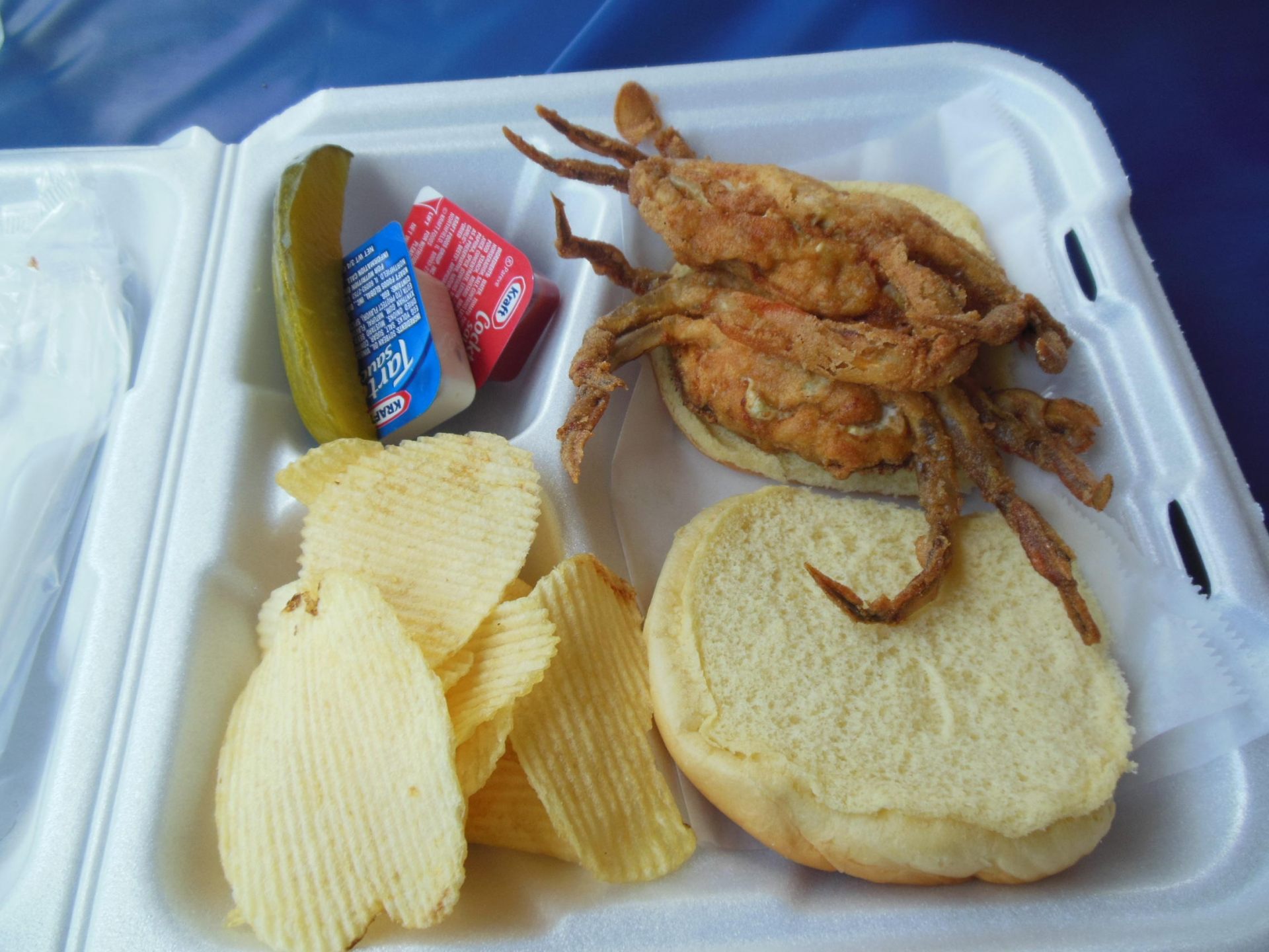 脱皮したばかりで殻がまだ薄く柔らかい状態のブルークラブが、ソフトシェル・クラブとして売られています。そのままフライパンで焼いてもおいしいですが、天ぷらやフライにしてもとてもおいしくいただけます。メリーランド州のシーフードレストランの多くではソフトシェル・クラブを丸ごとフライにしてパンで挟んだサンドイッチもあります。