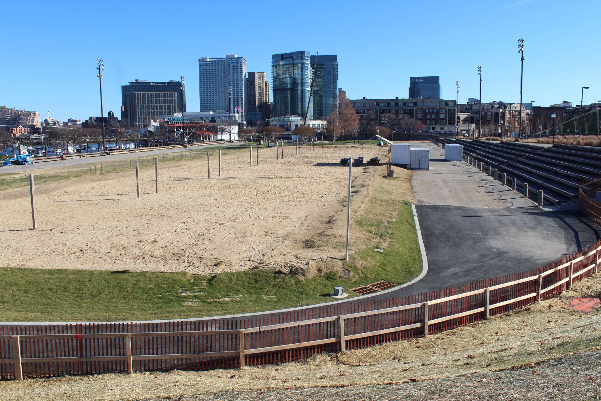 また、今回新設されたスケートパークの隣には、以前から整備されているビーチバレーのコートが7面あります。ここでプレーするには、コートを管理しているボルチモア・ビーチバレー協会への登録が必要ですが、シーズンには毎週2500人もここでプレーするほど人気スポットだそうです。このバレーコート一帯も公園再開発プロジェクトの一環で、今後再整備が予定されています。