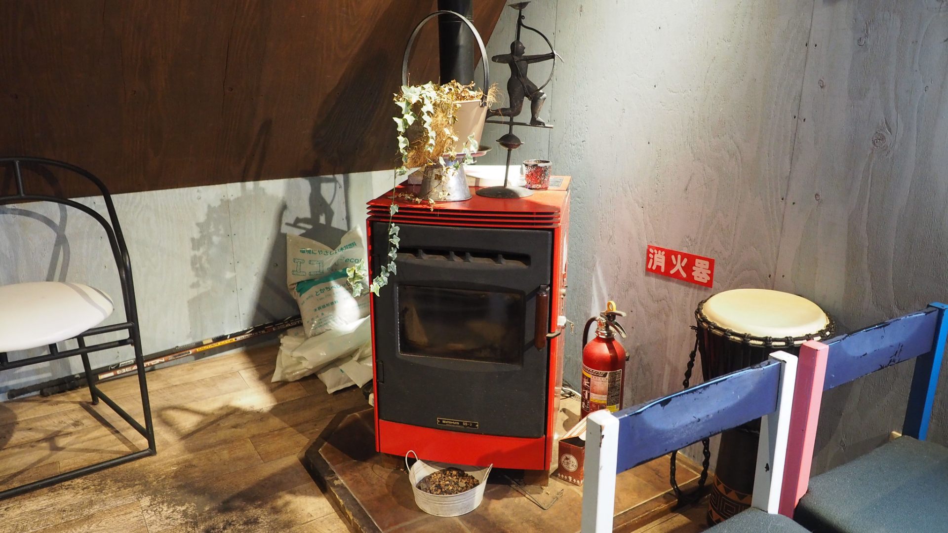 こちらのお店の雰囲気は、まさにペレットストーブがぴったり。ストーブが点いている時期には、さらに居心地がよさそうです。