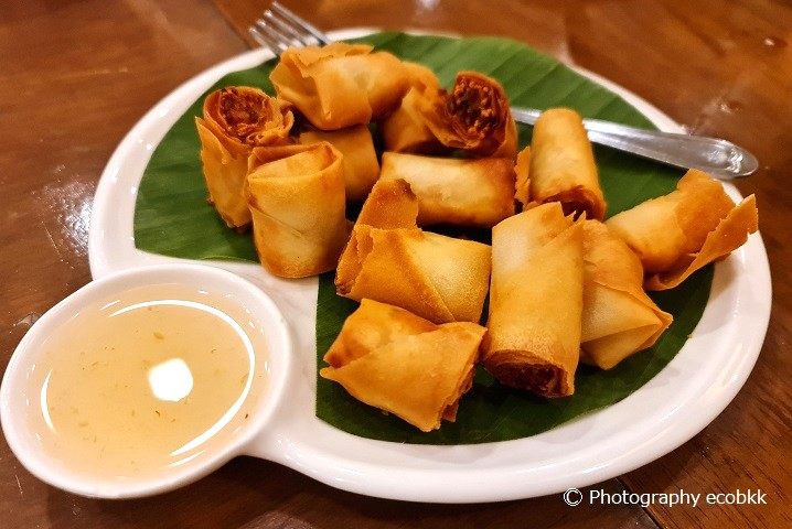 揚げ物もほしくなり、最後に頼んだ揚げ春巻き「ポーピア・トート」は春雨が少量入っただけの揚げ春巻きで、来た瞬間、食べきれないかもしれない…と思いましたが、珍しく、たこ焼きのような風味のする揚げ春巻きで、意外にも、なんとか、食べきることができました。