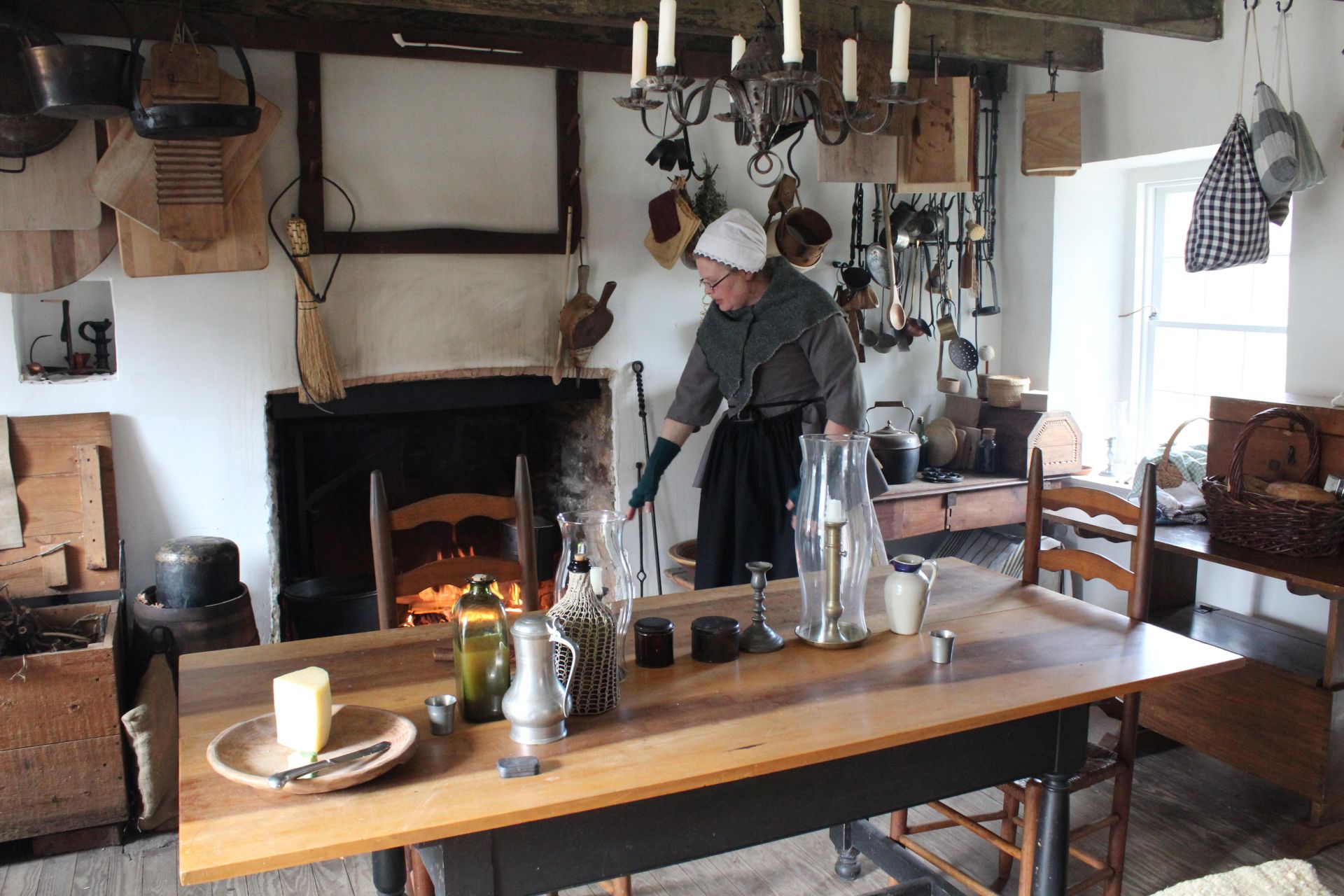 製粉場の大きな納屋の裏にあるミラー・ハウス(Miller's House)と呼ばれる小さな石造りの家では、18世紀の服装に身を包んだボランティアの方々が、当時の庶民の台所仕事の様子を実演してくれます。【※実演は土日の午後1時~4時】