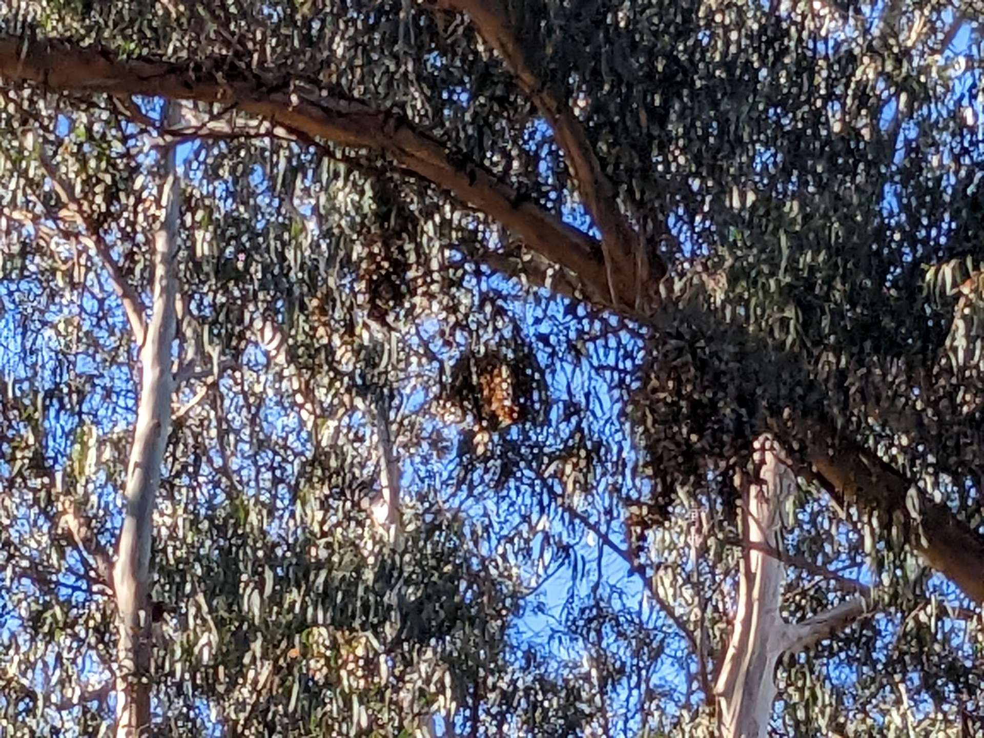 例年、このクラスター(蝶が集まってミノムシのように気からぶら下がっている様子)はホリデーシーズン明けまで楽しめます。