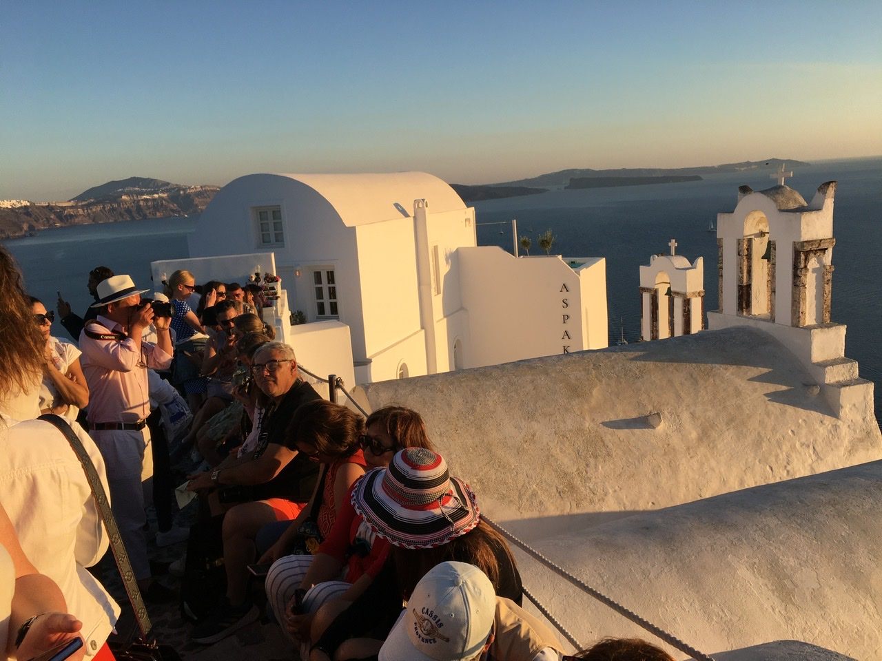 さらに、「周囲の景色と相まった夕日がステキすぎる!」と感動してしまう場所といえば、もう少し範囲が狭まってくるかと思います。美意識、感動の尺度はひとそれぞれですが、ギリシャはサントリーニ島のイア(Oia)で見るそれは、観客の多さからいっても「世界一綺麗な夕日(のひとつ)」と言ってしまってよいのではないでしょうか。