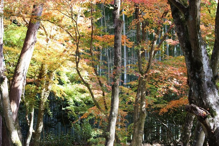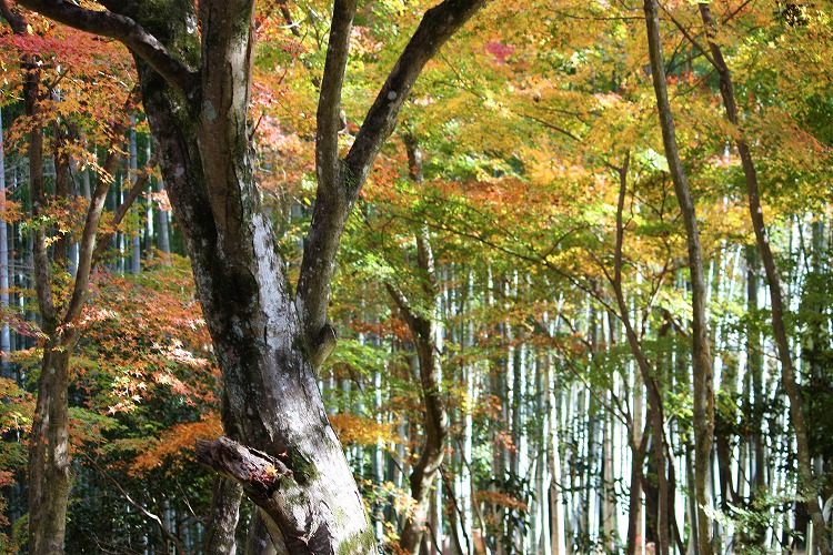 色づいたもみじと竹林の世界に、ただただ見入ってしまいます。