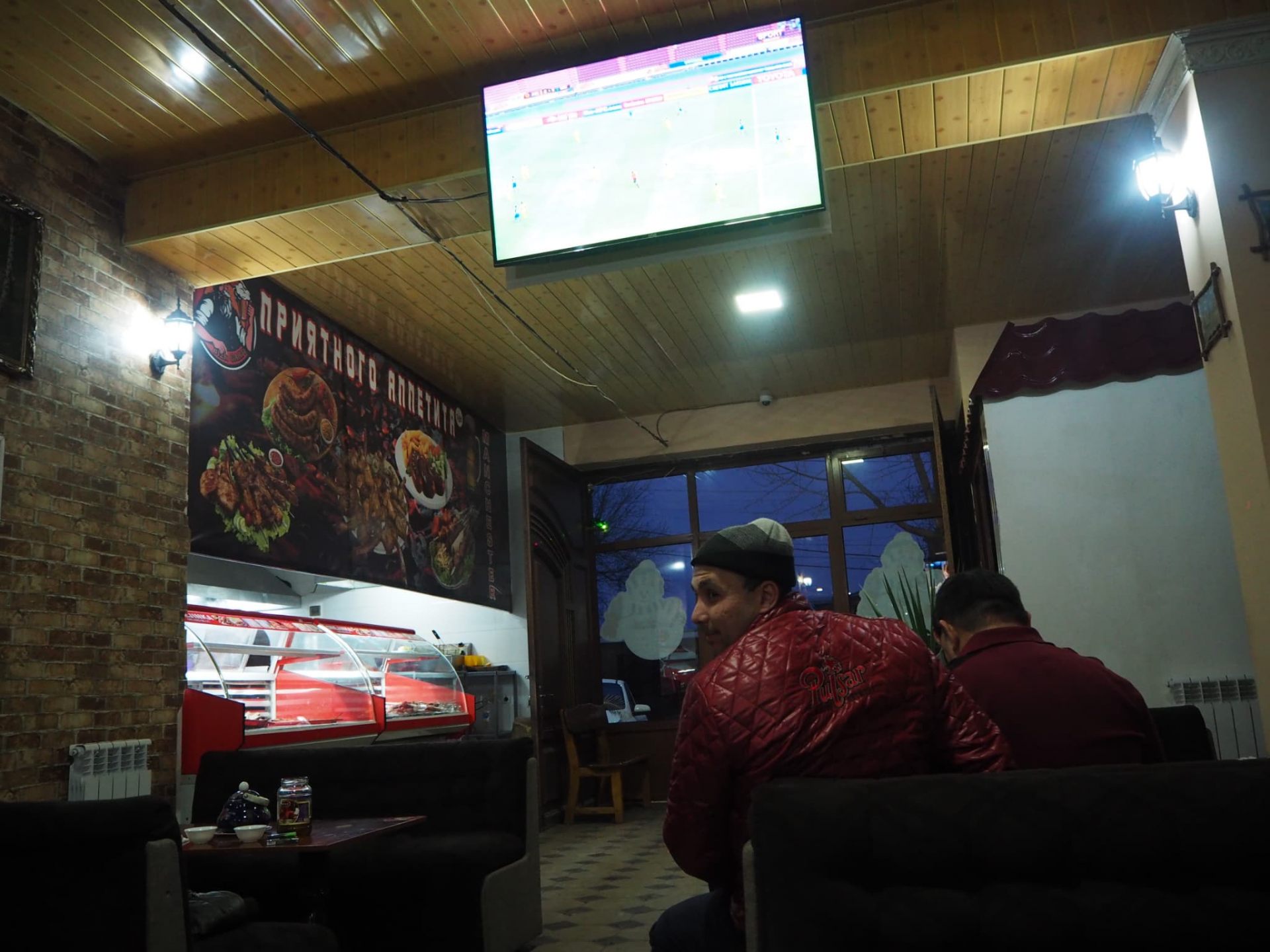 このお店もテレビがいくつか設置されており、ウズベキスタン国内リーグから海外サッカーまで頻繁に試合が放送されています。また数室ある個室でもテレビがついており観戦可能。今回の日本vsドイツ戦もしっかり流してくれました。アットホームな雰囲気で店員さんもフレンドリーなので、見たい試合があれば気軽に相談してみましょう。